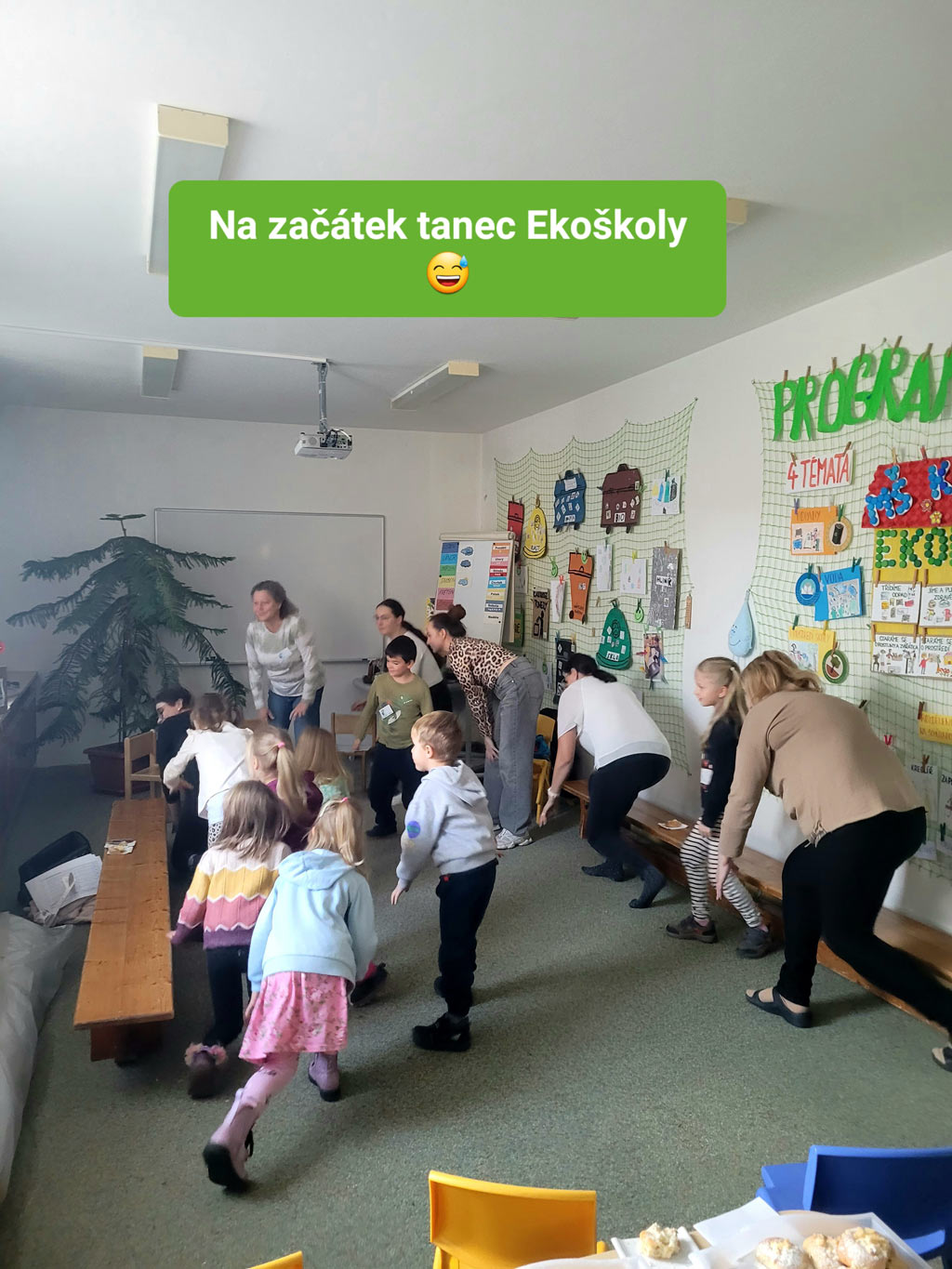 Po úvodním přivítání jsme si rozdělili role v týmu a pro uvolnění atmosféry jsme se pustili do učení tance Ekoškoly, při kterém jsme se všichni dobře pobavili.