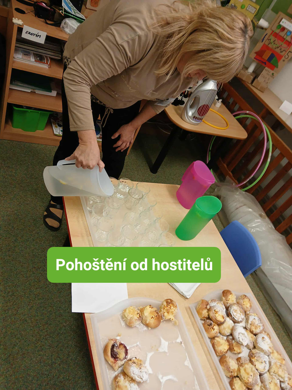 Na závěr nás hostitelé pohostili výbornými koláčky a společně jsme si zatančili tanec Ekoškoly ještě jednou. Další setkání jsme naplánovali na 19. ledna 2026.
